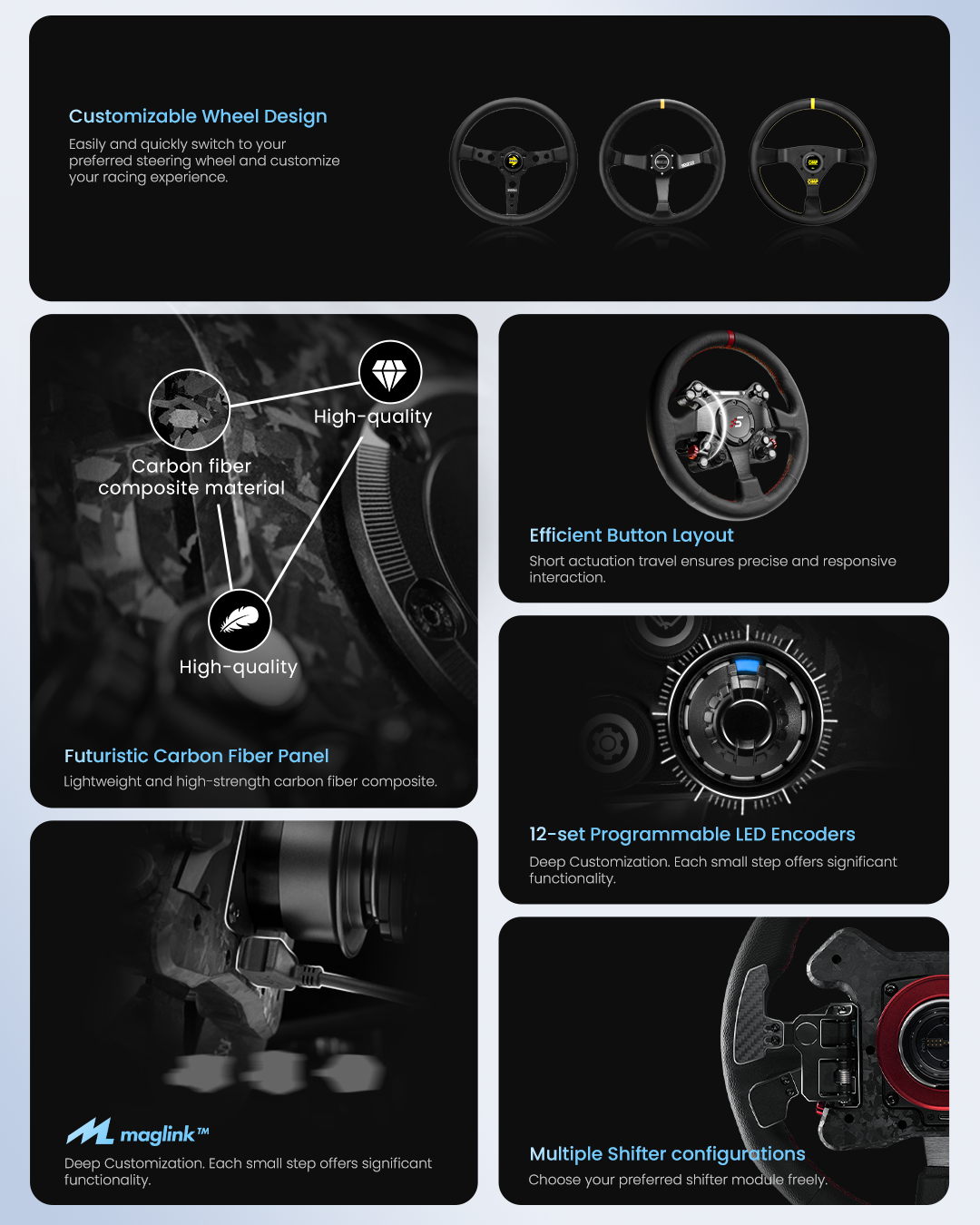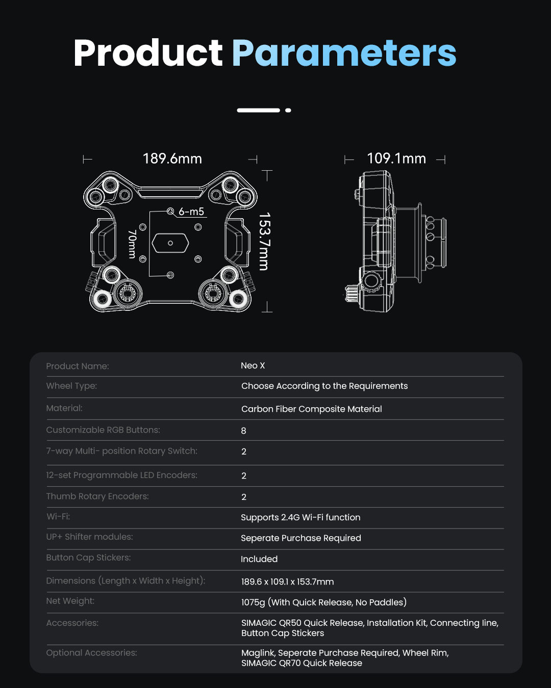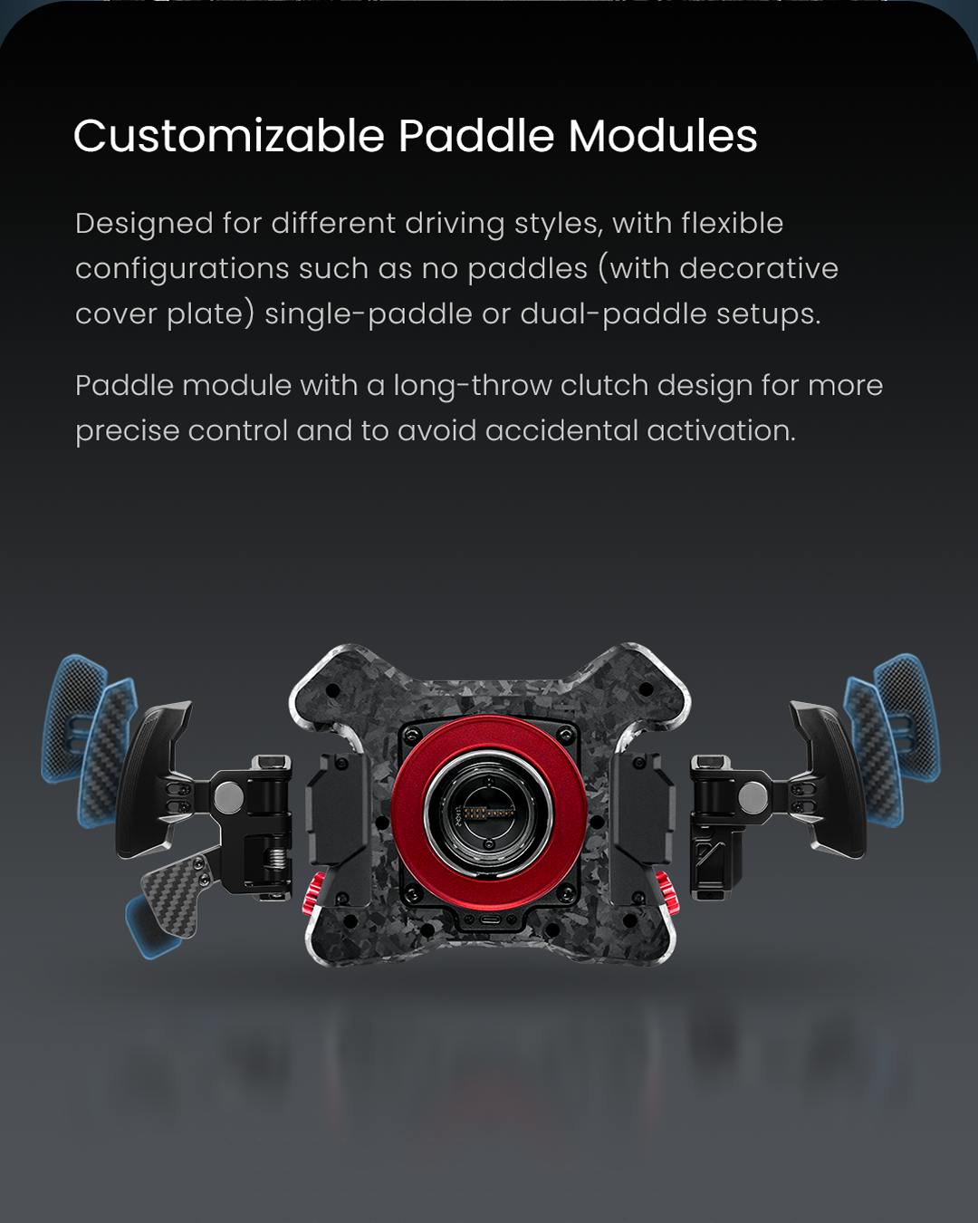The Simagic Neo X Hub is a lightweight, modular hub designed to form the core of your custom wheel build. Machined from aluminum and weighing just 295g, it offers a clean and durable solution with support for multiple paddle configurations and button plate integration.