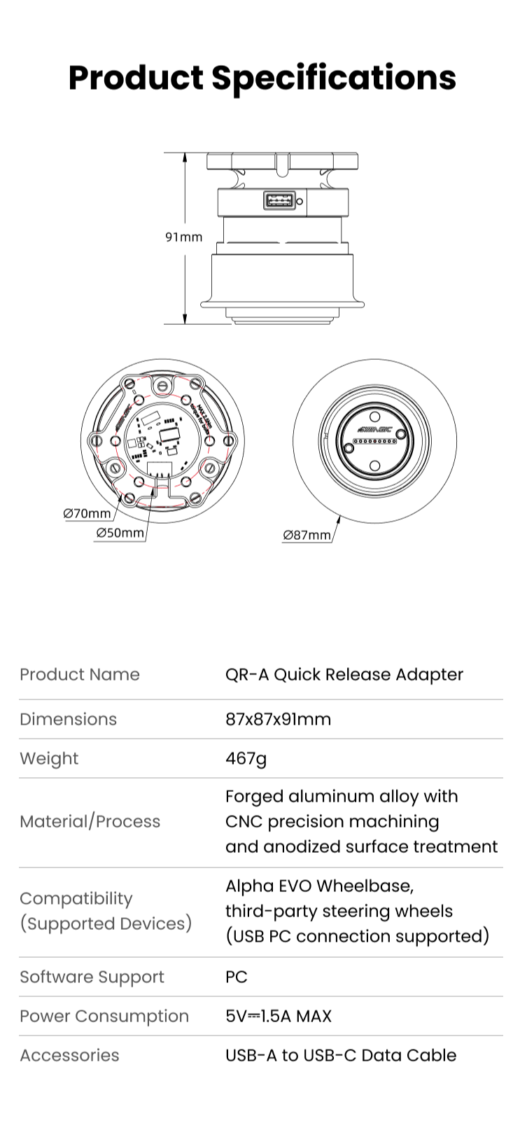 Simagic Quick Release AdapterEasily mount third-party steering wheels with a standard 70mm PCD to your Alpha EVO wheelbase using this Simagic quick release adapter.