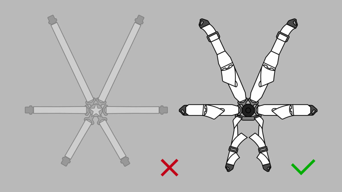 Slots below shoulder level (marked as ‘TOO LOW‘) give a downward pull, suitable for flight simulators to mimic downward G-forces, but not ideal for racing simulations.