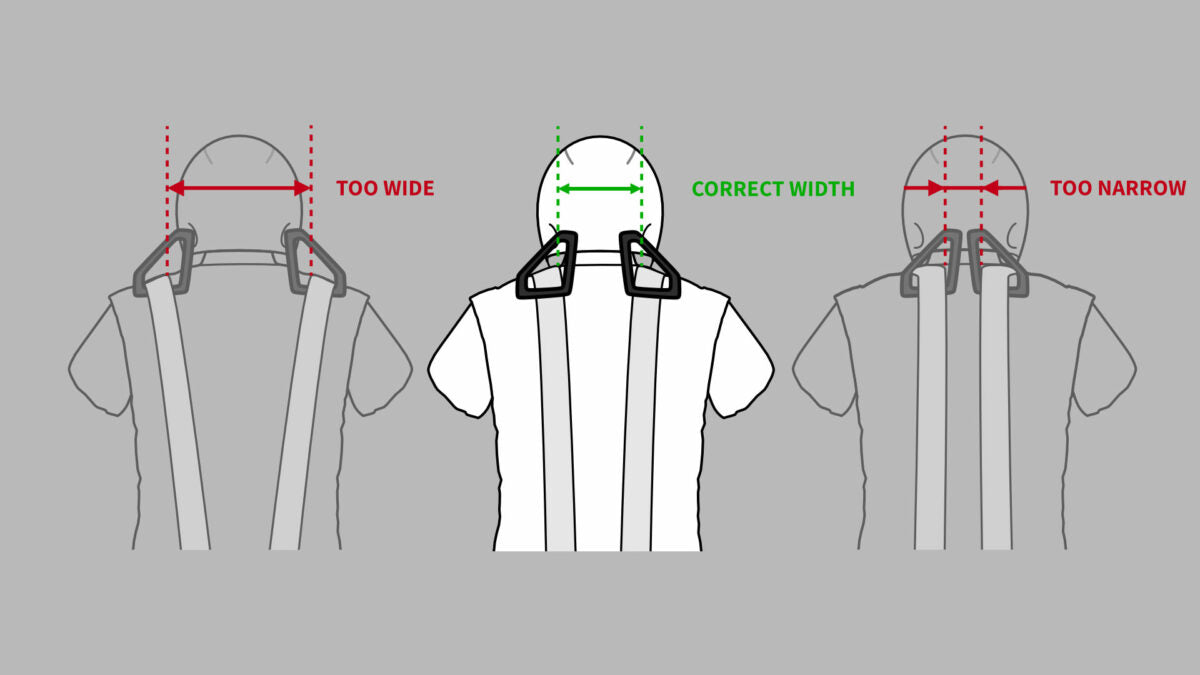 For optimal overall experience, the belt slots should align horizontally with your shoulder level (indicates as “CORRECT HEIGHT“).