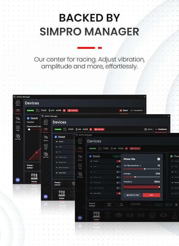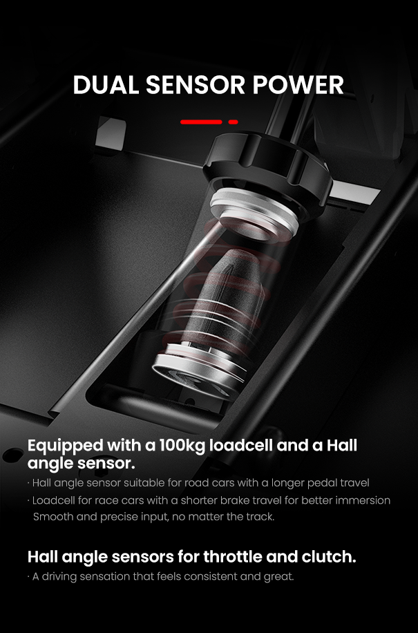 Dual Sensor Power: Equipped with a 100kg load cell and a Hall angle sensor, the P500 provides precise feedback for enhanced realism.