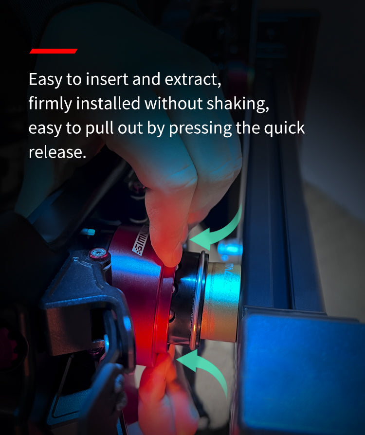 Introducing the Simagic Wheel Mount: a stylish solution to showcase your collection of Simagic wheels. Crafted from durable CNC aluminum, it ensures stability for all Simagic wheel models. With 5 color choices, it seamlessly complements your setup. Easily attach it to aluminum profiles, walls, or wooden boards. Its smart design guarantees secure wheel placement and removal via the quick-release feature. Elevate your space with the Simagic Wheel Mount's aesthetic and functional benefits.