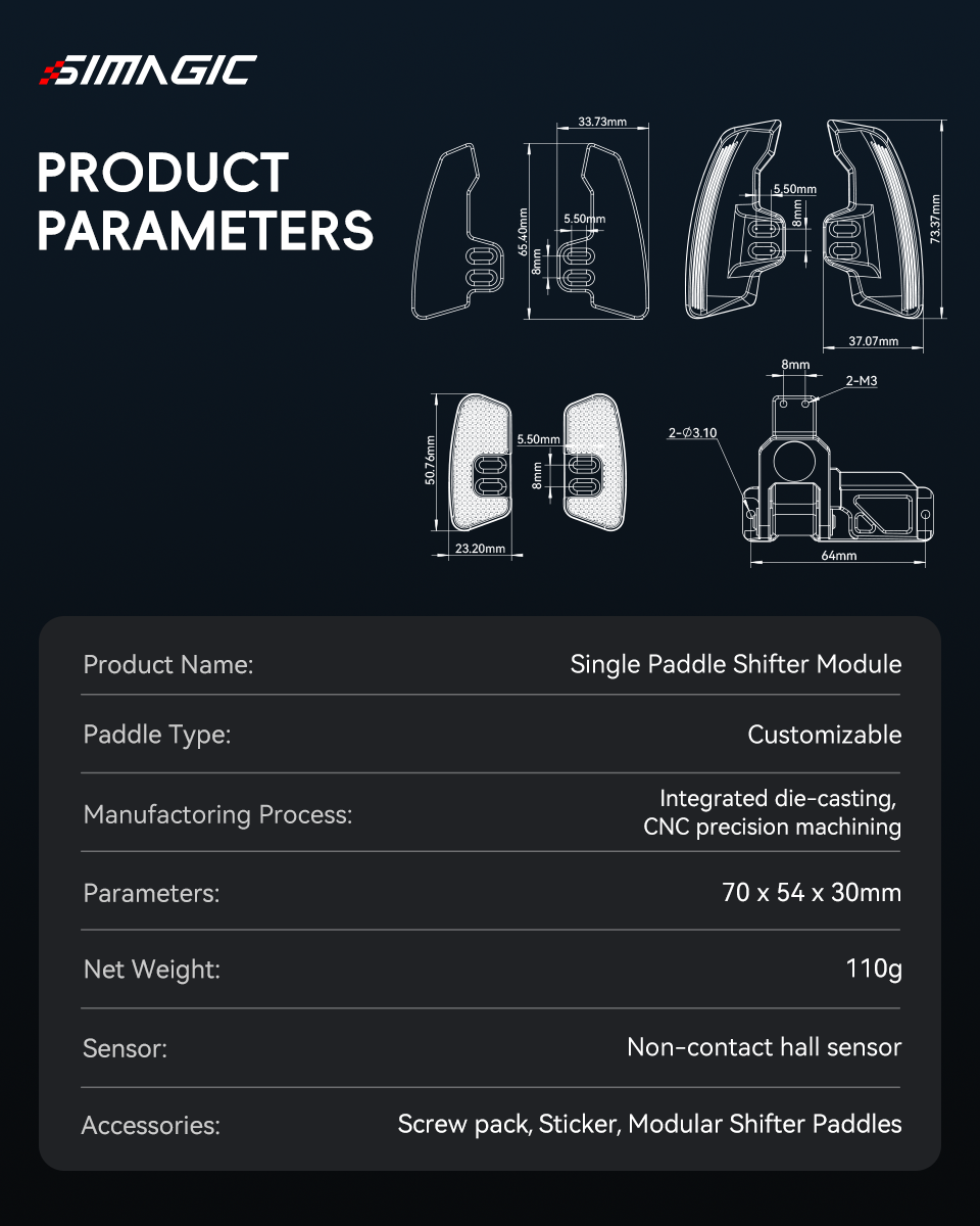 A compact, high-performance solution for sim racers using the Simagic GT Neo or Neo X. Built with precision and flexibility in mind, this single paddle module offers a reliable option for clutch or handbrake-style input.