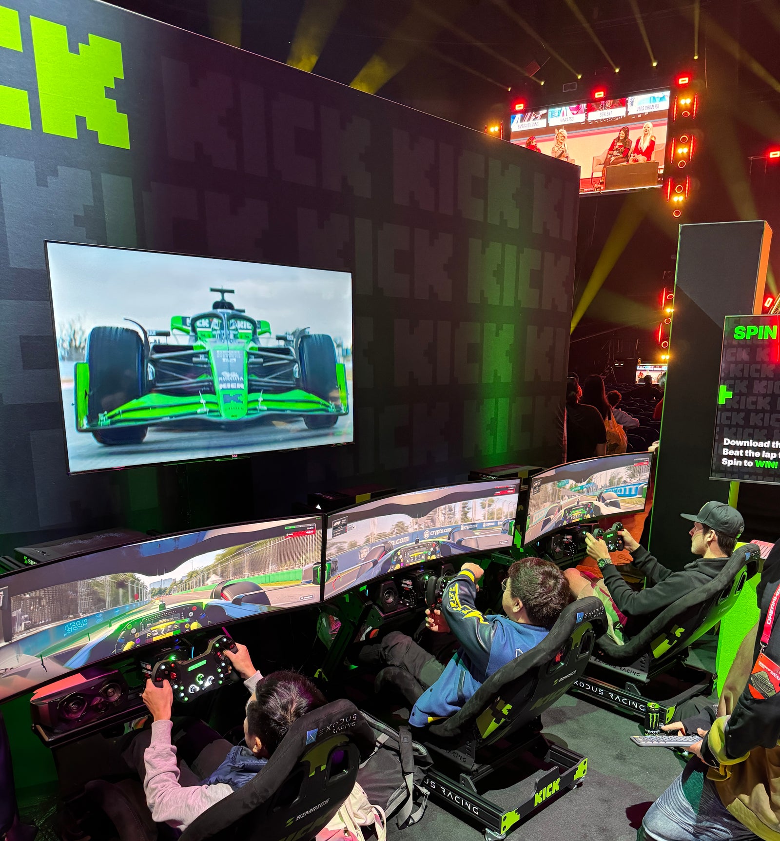 We supplied three racing simulators for the Kick booth at DreamHack, giving attendees a chance to jump in and experience sim racing firsthand. It was a great way to introduce more people to the world of competitive virtual motorsport in an interactive and engaging setup. Throughout the event, competitions were held for the fastest lap times, adding an extra layer of excitement and friendly rivalry among participants.