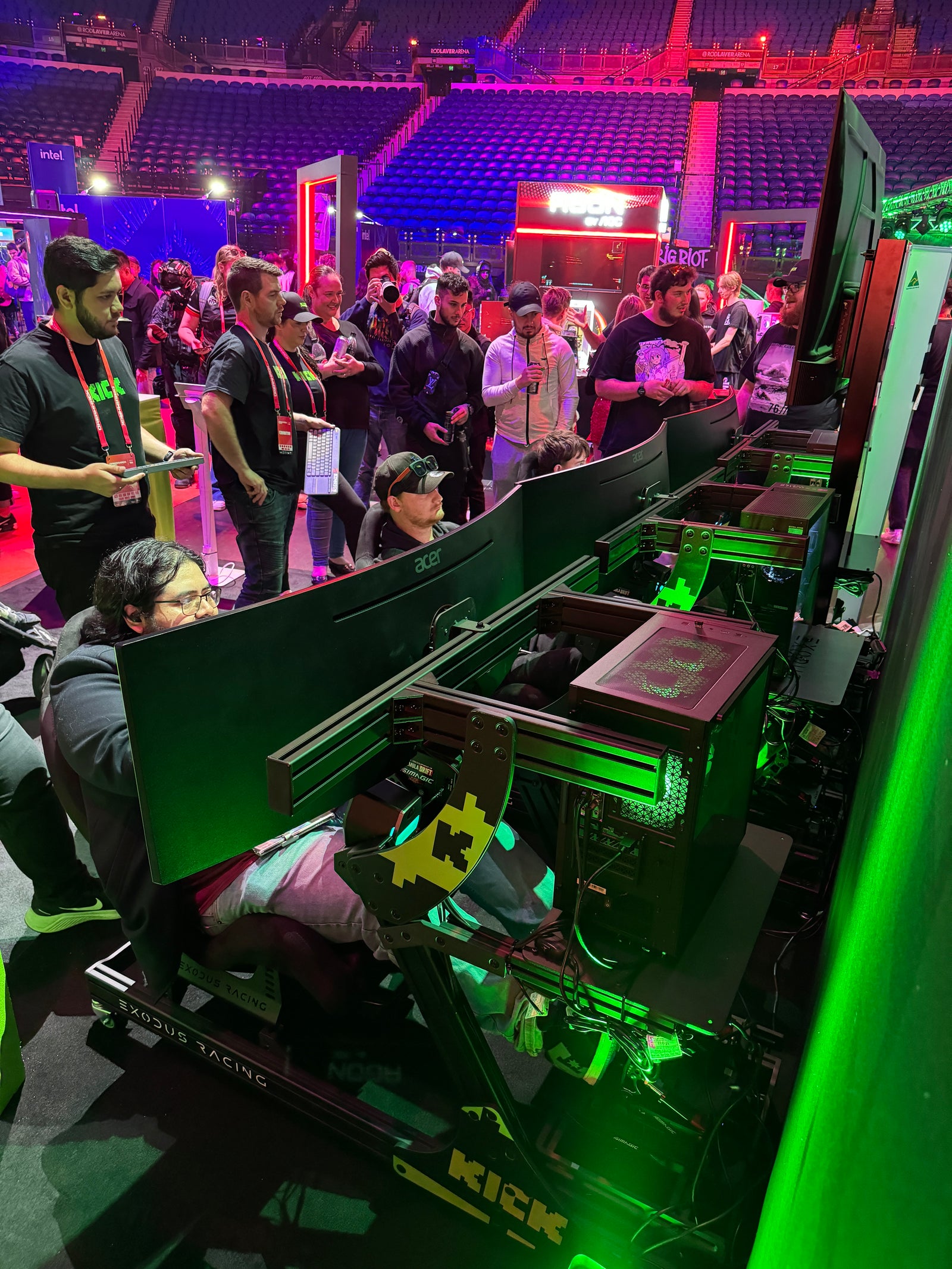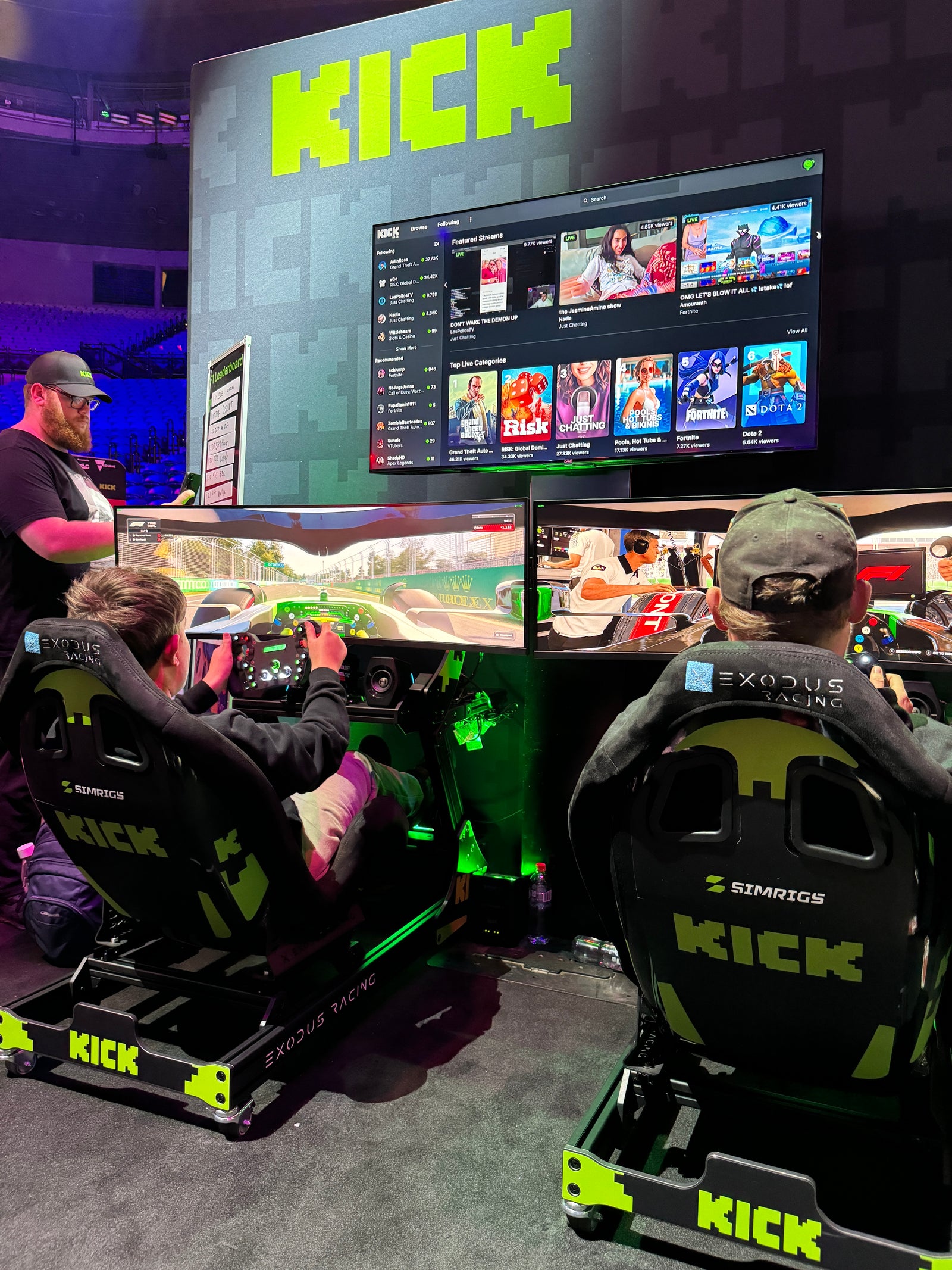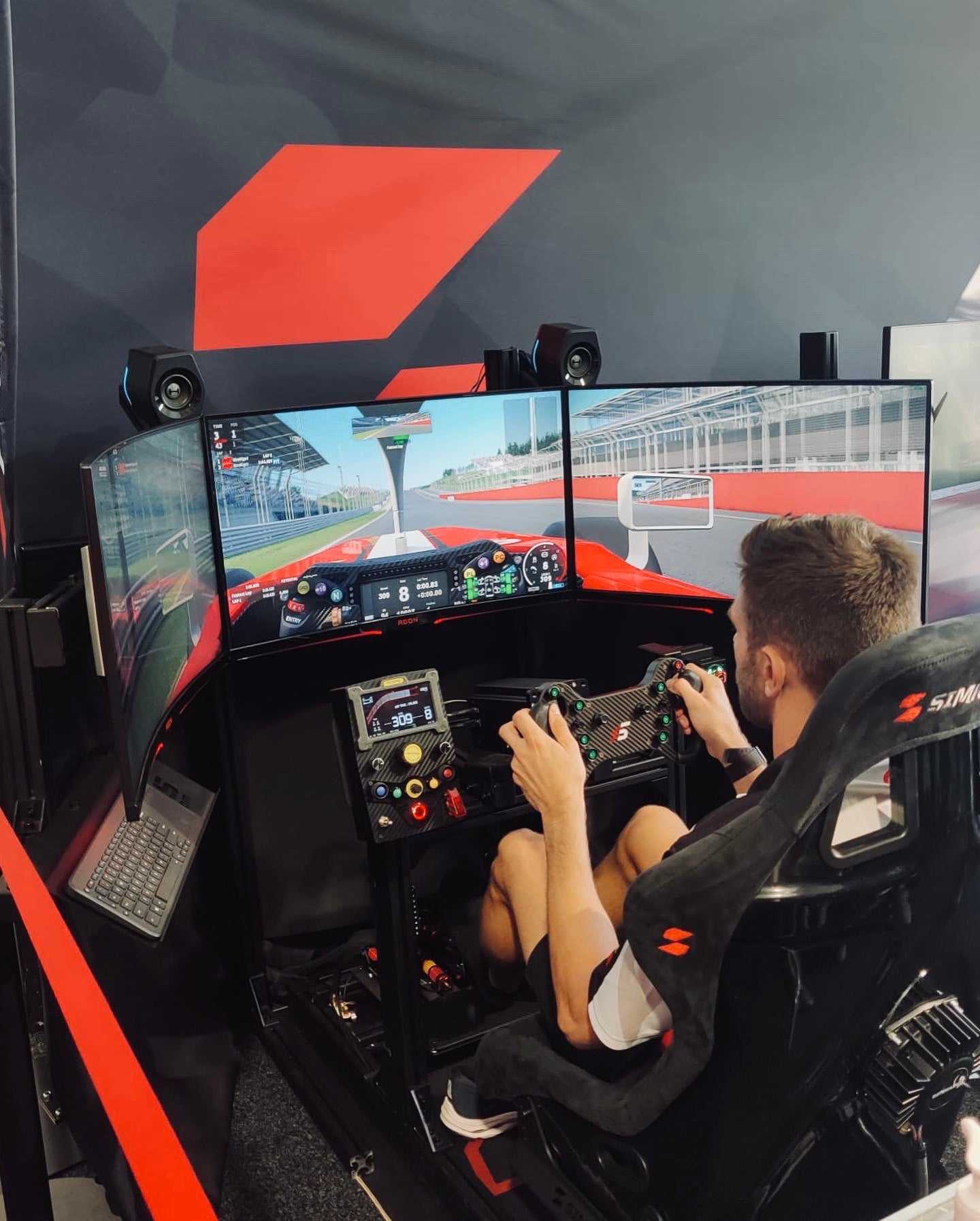 We supplied three racing simulators for the Kick booth at DreamHack, giving attendees a chance to jump in and experience sim racing firsthand. It was a great way to introduce more people to the world of competitive virtual motorsport in an interactive and engaging setup. Throughout the event, competitions were held for the fastest lap times, adding an extra layer of excitement and friendly rivalry among participants.