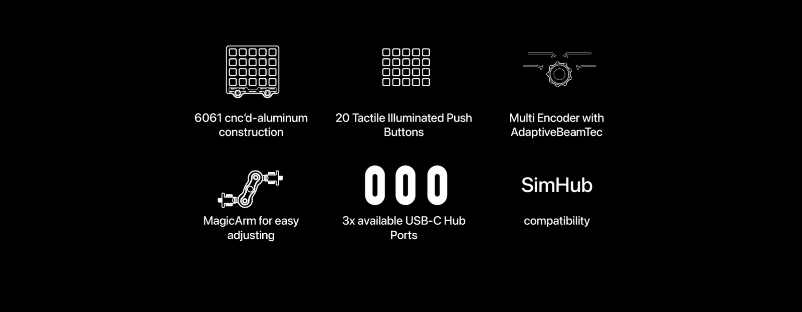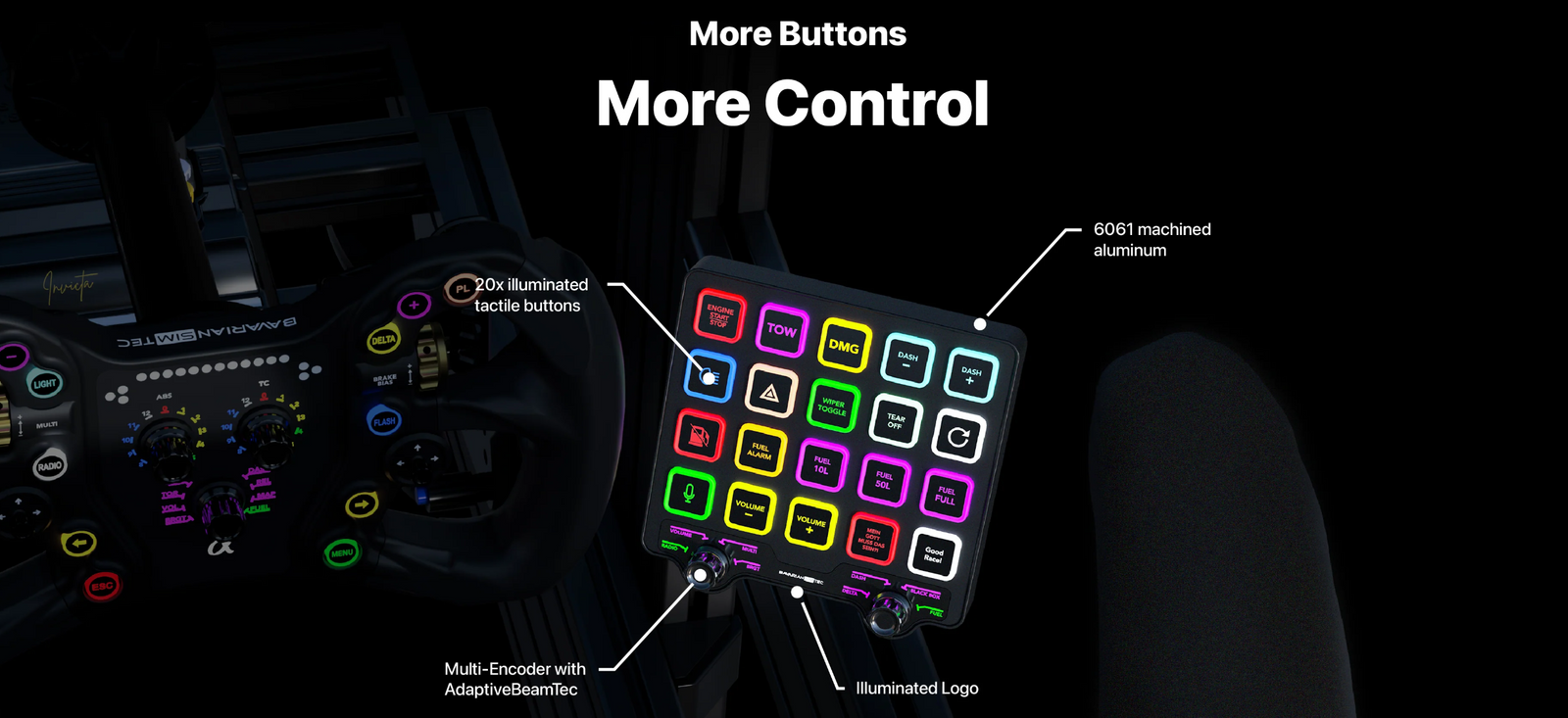 The ControlCenter is a compact yet powerful command module for sim racers who want seamless control at their fingertips. Meticulously crafted in Bavaria, this button box provides premium build quality and intuitive functionality - ready to elevate your cockpit experience.
