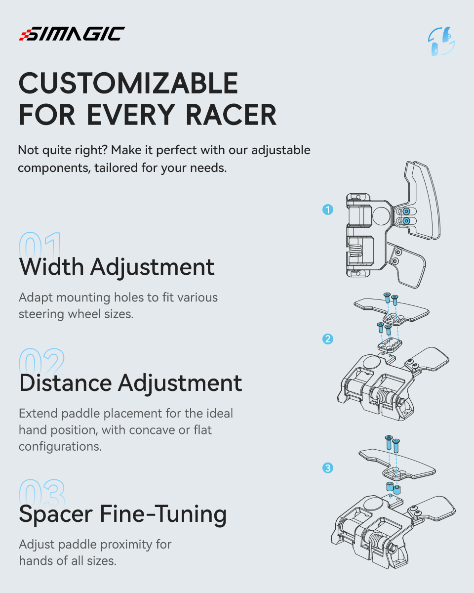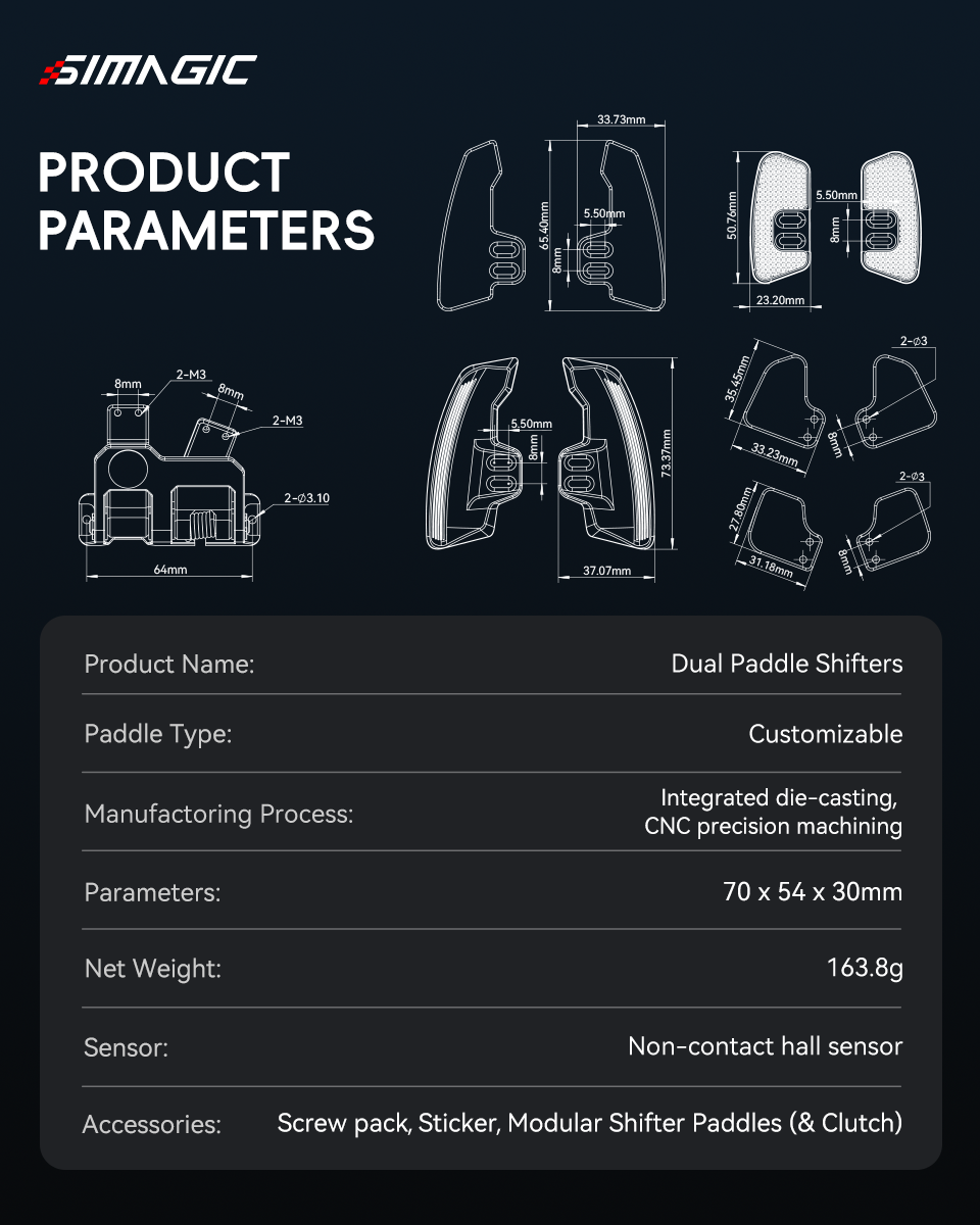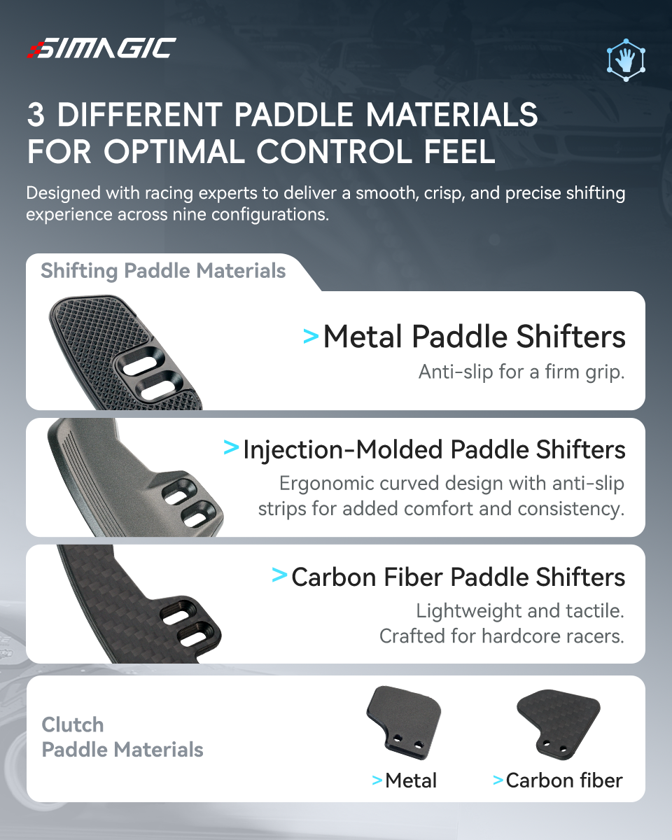 A refined, high-performance shifting solution designed for sim racers running the Simagic GT Neo or Neo X. With both shift and clutch paddles included, this dual paddle module is ideal for those seeking fast, reliable gear changes and launch control in a compact, modular design.