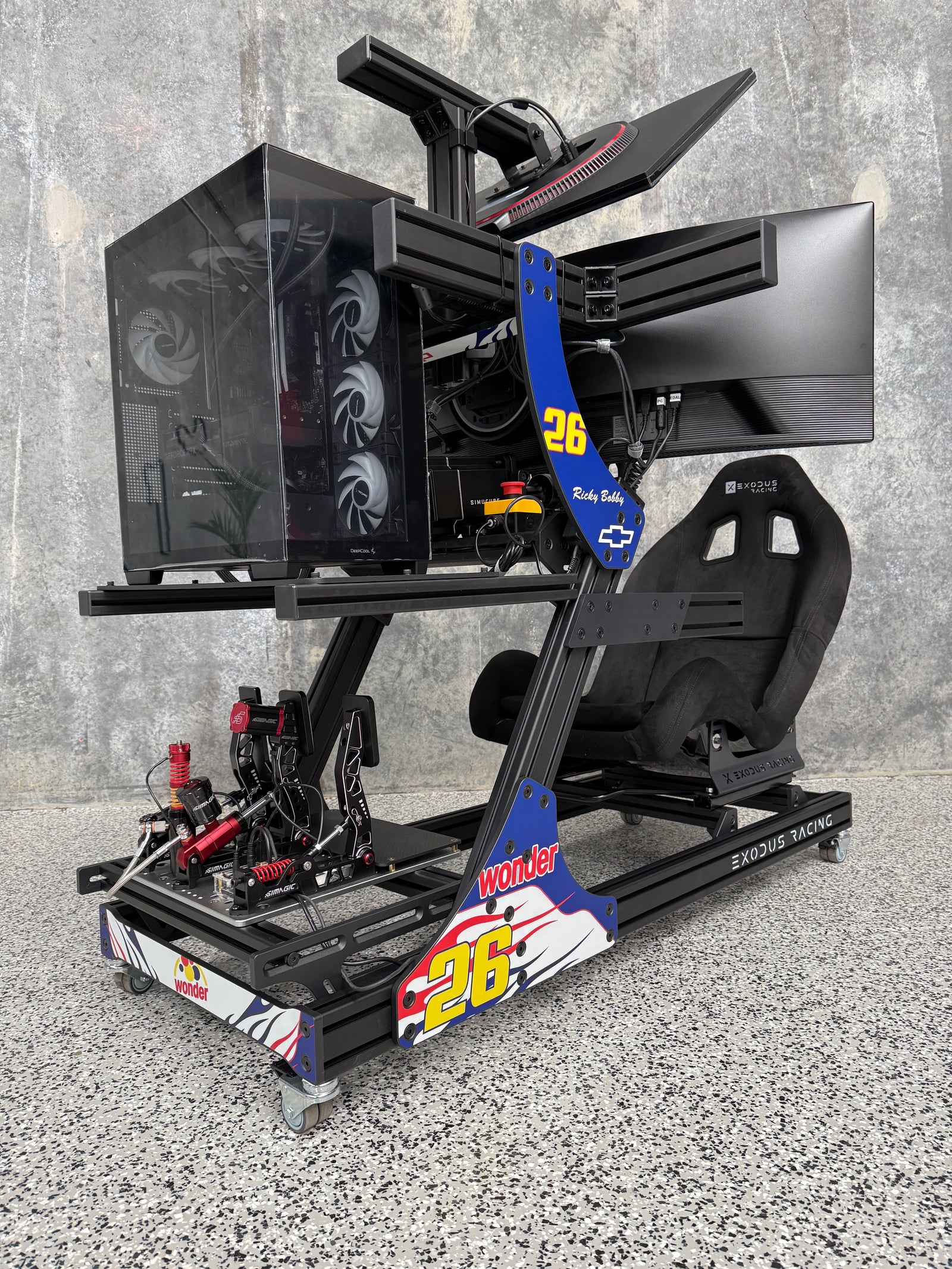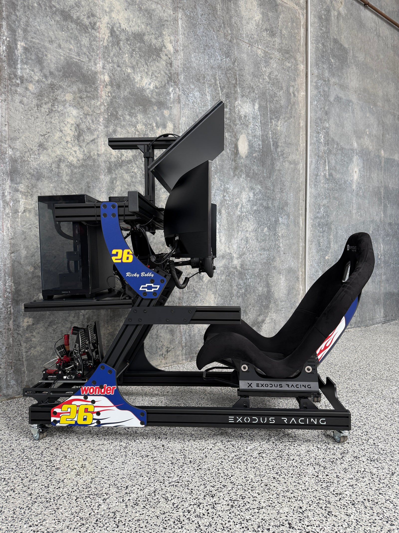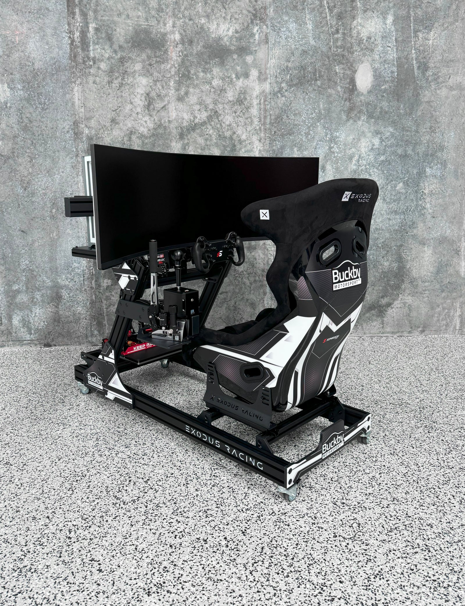 Experience the unparalleled performance of the Exodus XR1 Racing Simulator, crafted with precision and attention to detail. This premium racing simulator boasts 10mm custom aluminum plates, ensuring exceptional durability and rigidity for a stable and immersive racing experience. Its sleek custom design will effortlessly compliment your sim racing room and its angular design facilitates easy access in and out of the simulator, ensuring quick transitions between intense racing sessions.