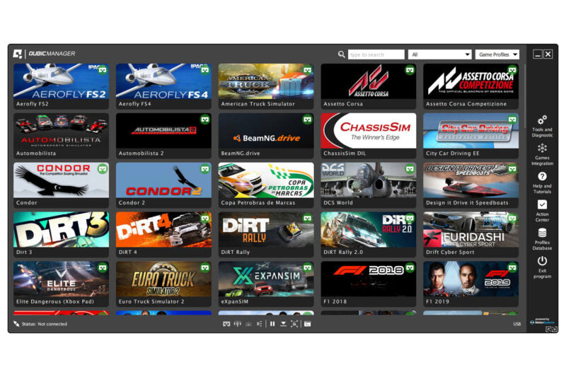 Qubic Manager is an in-house software designed for motion platforms, compatible with all major racing and flight titles on PC. Continuously updated to support new releases, it offers powerful yet user-friendly features to adjust motion, bumps, roll, and pitch with ease. Its intuitive interface is ideal for all skill levels, with quick start wizards, predefined profiles, and troubleshooting guides for beginners. Advanced users enjoy a detailed editor, scripting support, and multi-device integration. Fully compatible with QS products, it enhances functionality and connects with a vibrant online community for collaboration. Developed over a decade, Qubic Manager boosts productivity and control within the Qubic ecosystem.