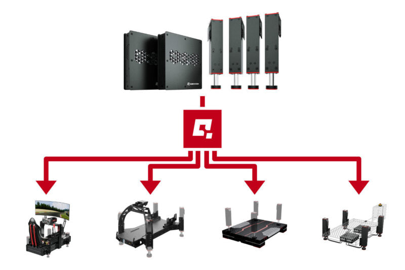 3DoF linear actuators set is a perfect motion base for QS-CH1 cockpit, and most aluminum profile-based cockpits available on the global market (using brackets). QS-210 works also with QS-CH2 motion platform. This ecosystem enables all components to work together efficiently, enhancing functionality, performance, and user experience.